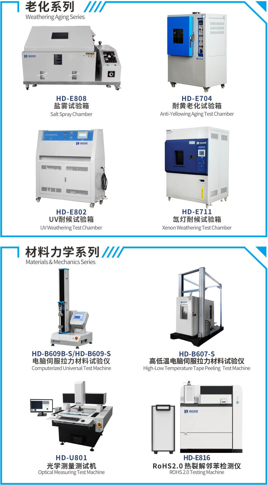 溫度系列試驗(yàn):恒溫恒濕試驗(yàn)箱、冷熱沖擊試驗(yàn)箱、高空低氣壓試驗(yàn)箱、溫濕度振動(dòng)綜合試驗(yàn)箱等檢測儀器可模擬極端氣候,以驗(yàn)證材料穩(wěn)定性。